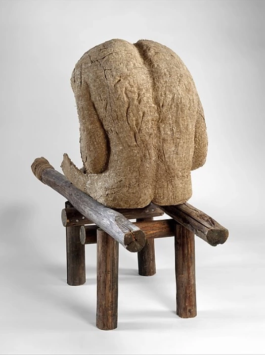 Postacie siedzące tworzone były przez artystkę w latach 1974-1984. Do ich tworzenia wykorzystała płótno, żywice oraz stelaż zrobiony z żelaznych prętów.